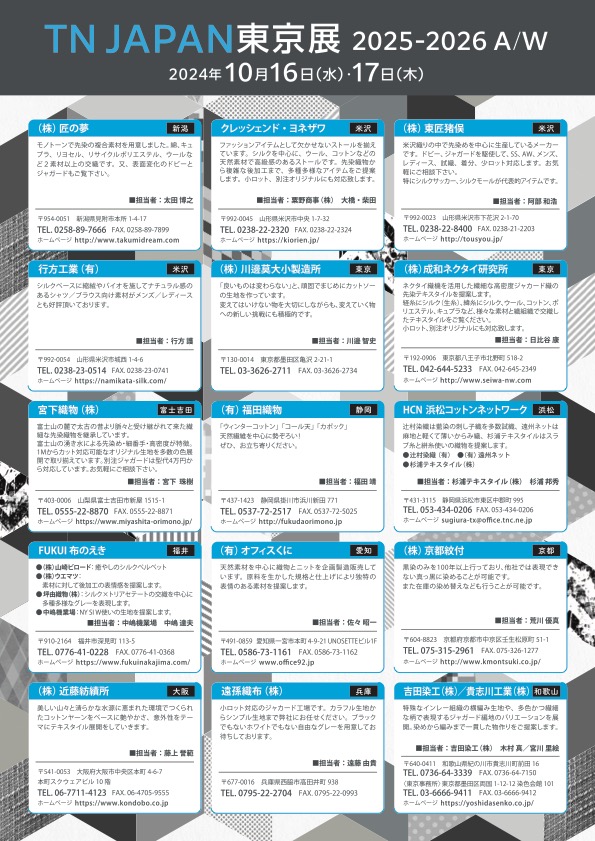 【2025-26AW TNJapan東京展】 日程:2024年 10月 16日(水)〜17日(木)
