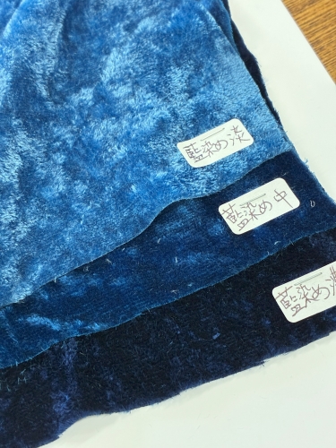 オーガニックコットンベルベットやリネンベルベットも藍染をしようと思っているので、